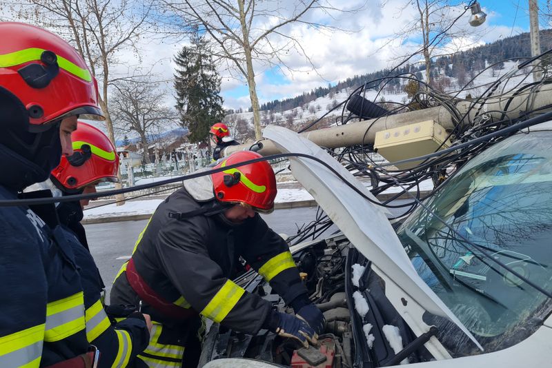La ora 09:45, prin apel la 112, pompierii au fost înștiințați despre faptul că pe strada Eroilor din municipiul Piatra Neamț au căzut doi stâlpi de electricitate.