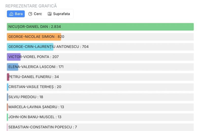 Datele transmise de Biroul Electoral Central reflectă numărătoarea voturilor pe măsură ce procesele-verbale ajung din secțiile de votare.