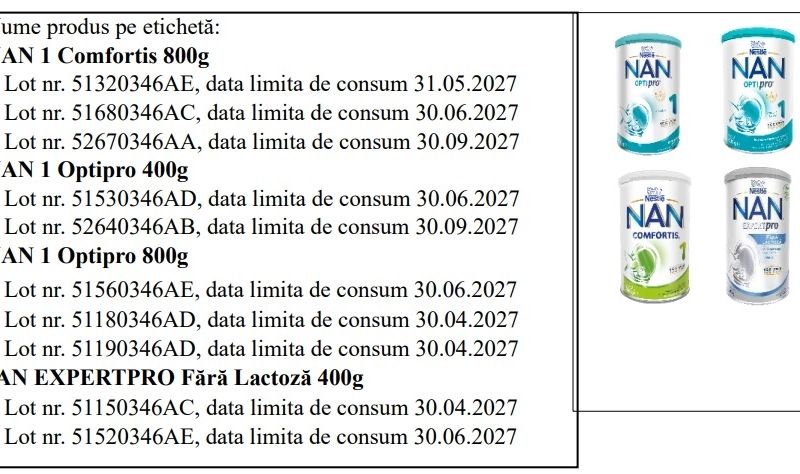 Aceasta este a doua rechemare făcută de Nestlé România în ultimele luni. În decembrie 2025, compania a retras două formule de lapte pentru sugari – NAN 1 Optipro și NAN 1 Comfortis – după ce a fost detectată prezența Bacillus cereus pe una dintre liniile de producție ale fabricii de origine.