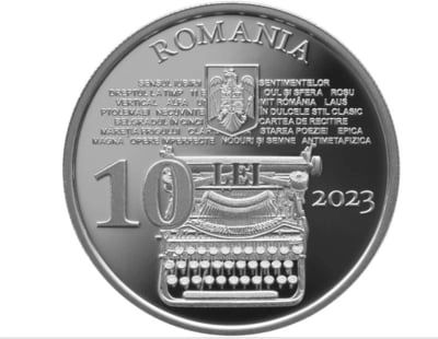 Monedele vor putea fi cumpărate atât online, cât și de la ghișeele sucursalelor regionale ale BNR.Cum va arăta monedaAversul monedei prezintă o mașină de scris care a aparținut poetului Nichita Stănescu și titlurile volumelor publicate de acesta, inscripția ”ROMANIA” în arc de cerc, stema României, valoarea nominală ”10 LEI” și anul de emisiune ”2023”.