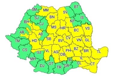 Cod galben de fenomene EXTREME. Zonele lovite puternic de vijelii și grindină - HARTA actualizată