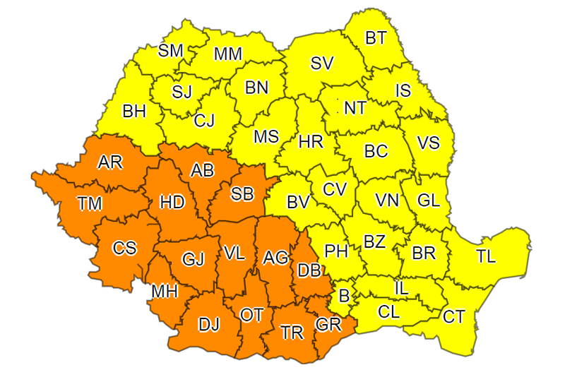 Potrivit meteorologilor, în intervalul 7 iulie, ora 18:00 – 8 iulie, ora 22:00, manifestările de instabilitate atmosferică vor cuprinde și regiunile sudice și estice.Astfel, local și temporar, se vor semnala intensificări ale vântului, vijelii, averse ce vor avea și caracter torențial, frecvente descărcări electrice și grindină.Cantitățile de apă vor depăși 20…25 l/mp și pe arii restrânse 40…50 l/mp.