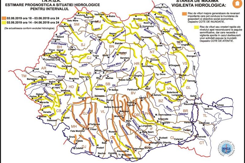 Hidrologii Institutului Naţional de Hidrologie şi Gospodărire a Apelor (INHGA), au actualizat astăzi, 2 iunie, Codul galben de inundaţii, valabil în județul Neamț.