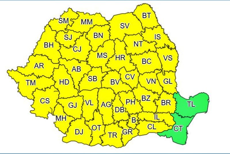 AVERTIZARE METEOROLOGICĂ COD GALBEN