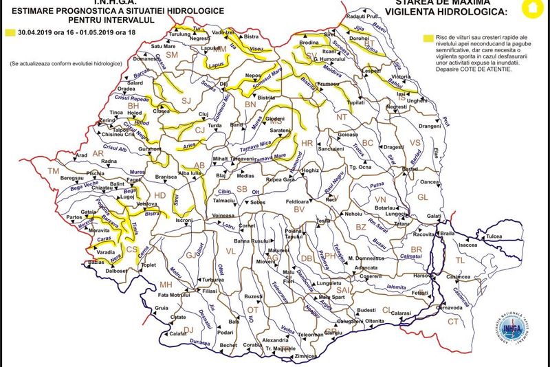 În intervalul 30.04.2019 ora 16:00 – 01.05.2019 ora 18:00, pe râurile Suceava – bazin superior şi afluenţi bazin mijlociu şi inferior, Moldova – bazin superior şi afluenţi bazin mijlociu şi inferior, Bistriţa – bazin superior şi afluenţi amonte S.H. Frunzeni (judeţele Suceava,