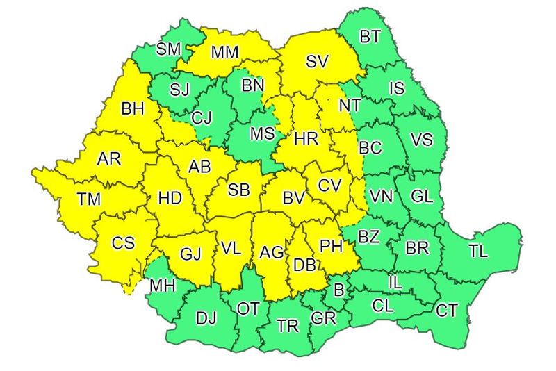 Potrivit meteorologilor, în intervalul 31 iulie, ora 15 – 31 iulie, ora 23, în zonele de munte, precum și în Crișana, Banat, jumătatea de nord a Munteniei și a Olteniei, local în Transilvania și nordul Moldovei vor fi perioade cu instabilitate atmosferică accentuată.Se vor semnala averse torențiale, frecvente descărcări electrice, intensificări ale vântului, vijelii și grindină. Cantitățile de apă vor depăși 25 l/mp și pe arii restrânse 40…50 l/mp.