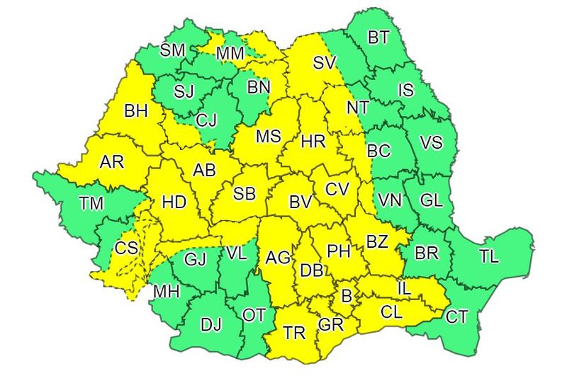 În intervalul 31 iulie, ora 23 – 01 august, ora 11, în Crișana, cea mai mare parte a Munteniei și a Transilvaniei, precum și zonele de munte vor fi perioade în care instabilitatea atmosferică va fi accentuată și se va manifesta prin averse ce vor avea și caracter torențial, frecvente descărcări electrice, intensificări ale vântului și izolat grindină.Cantitățile de apă vor depăși 20…25 l/mp și pe arii restrânse 40…50 l/mp.