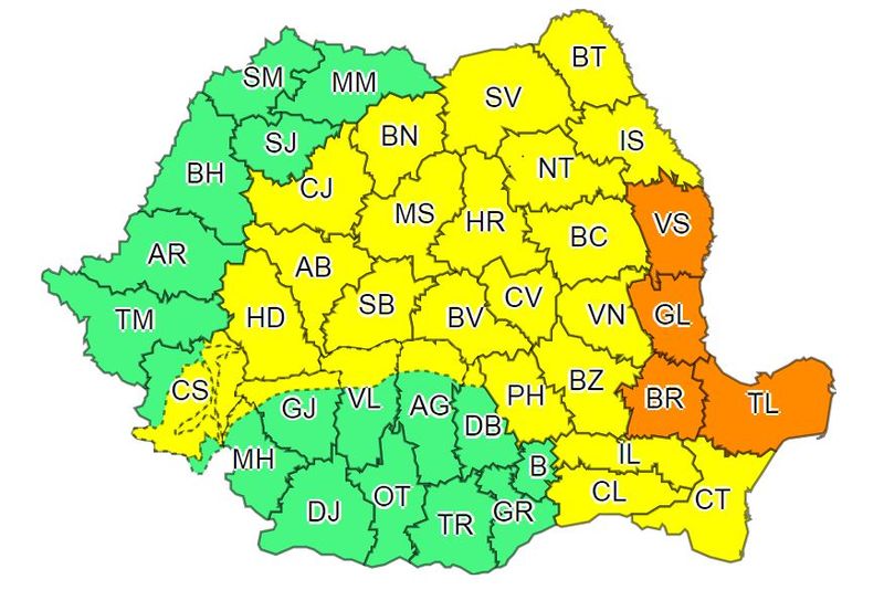 Potrivit meteorologilor, în intervalul 03 august, ora 12 – 04 august, ora 02, în Moldova, Dobrogea și estul Munteniei vor fi perioade cu instabilitate atmosferică accentuată.Se vor semnala averse torențiale, descărcări electrice și intensificări ale vântului, vijelii și grindină.În intervale scurte de timp sau prin acumulare, cantitățile de apă vor depăși 25 l/mp și, pe arii restrânse, 40…50 l/mp.ANM a emis și un Cod portocaliu de cantități importante de apă și instabilitate atmosferică accentuată pentru județele Vaslui, Galați, Tulcea și Brăila până pe 4 august, ora 2:00.