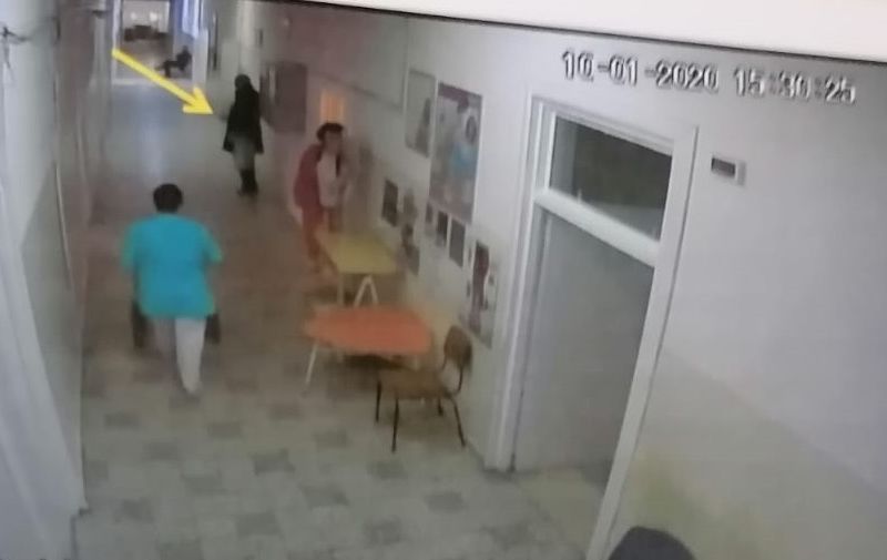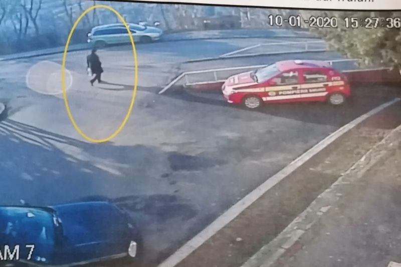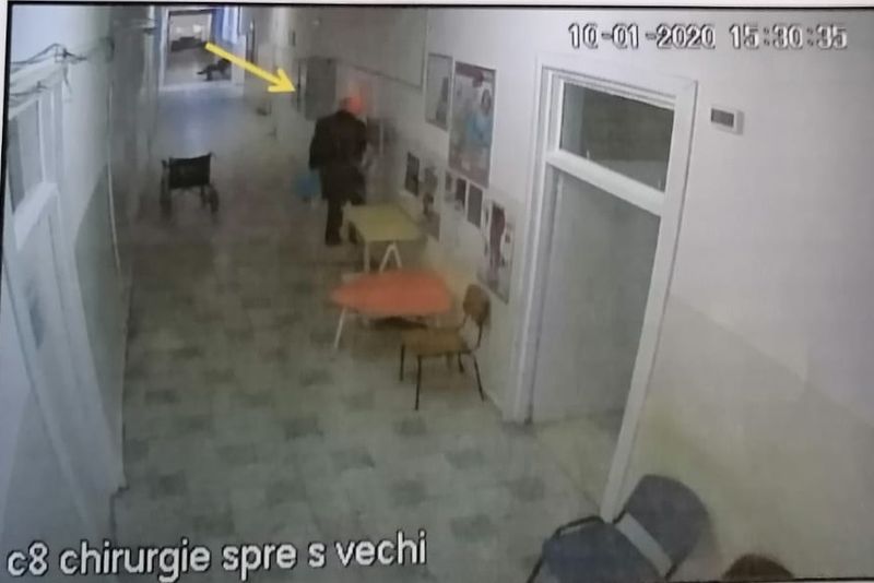 Momentul în care soțul directoarei medicale tranzitează curtea Spitalului de urgență Piatra Neamț și se îndreaptă spre intrarea în spital: