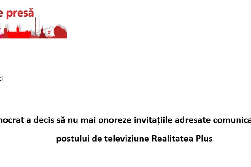 Partidul Social Democrat a decis să nu mai onoreze invitațiile adresate comunicatorilor săi la emisiunile postului de televiziune Realitatea Plus.