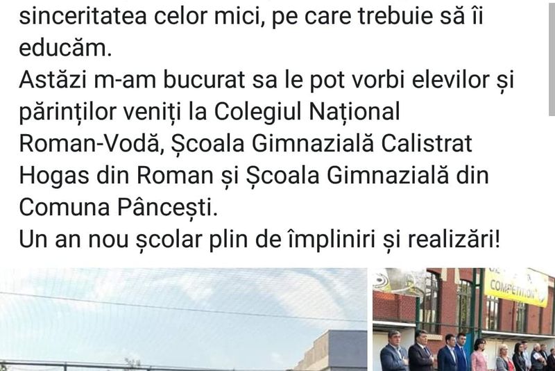 Aceasta a postat pe o rețea de socializare și o imagine în care le urează ”cu prietenie ”, ”Elevilor, dascalilor, bunicilor, parintilor Succes în noul an școlar!”, nehotărâtă fiind dacă să folosească diacriticele sau nu.[gallery link="file" ids="3079,3080"]Senatorul PNL, Eugen Țapu-Nazare nu a participat la nicio festivitate de deschidere, iar mesajul său postat pe Facebook